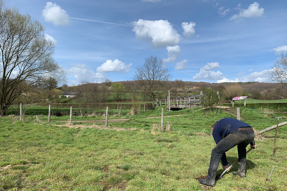 ".......Dit is een perceel waar we streven naar een zink-weide, op een aantal plekken staan nog zinkviooltjes, zink-flora langs de Geul, dat komt van de zinkwinning in Belgie. De zinkwinning is al jaren geleden gestopt en de zinkdeeltjes spoelen weg waardoor de zink-flora nu is afgenomen....."